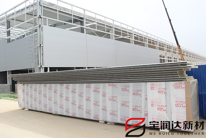 考慮到所需要的板材強(qiáng)度以及美觀性能,項目選用寶潤達(dá)聚氨酯側(cè)封巖棉墻板及屋面板。