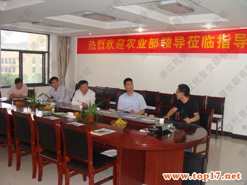 2012年5月19日,農業部種子管理局張延秋局長、全國農技中心黨委杭大鵬書記等一行奔赴浙江出席在杭州市蕭山金馬飯店召開的2012年第四屆中國.浙江瓜菜種業交流會。會后,來到位于西湖科技園的浙江托普儀器有限公司進行參觀考察并指導工作。