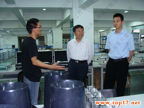 張延秋局長、杭大鵬書記一行在托普儀器總經理陳渝陽的陪同下來到托普儀器公司,先后參觀了研發中心、技術部、樣品展覽室、生產車間,并詳細了解了托普儀器自行研發生產的產品和生產流程。
