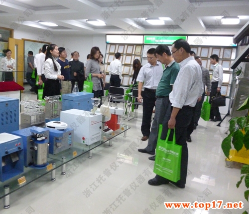 圖為:全國(guó)各地種子檢驗(yàn)領(lǐng)導(dǎo)專家參觀浙江托普儀器有限公司