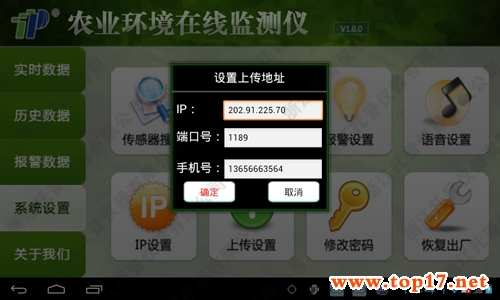 IP設(shè)置:設(shè)置數(shù)據(jù)上傳服務(wù)器的IP地址,手機(jī)號(hào)為找回密碼用的手機(jī)號(hào)。