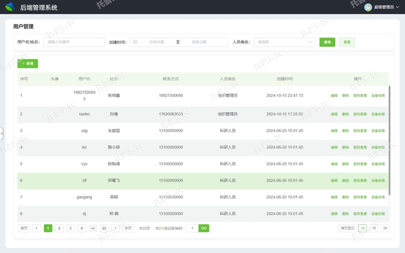 (2)人工氣候室數(shù)據(jù)列表:支持展示所有人工氣候室終端列表及基礎(chǔ)信息;支持展示人工氣候室設(shè)備狀態(tài):在線、離線;支持人工氣候室序列號(hào)查詢;支持新增/刪除終端數(shù)據(jù);支持編輯終端名稱;